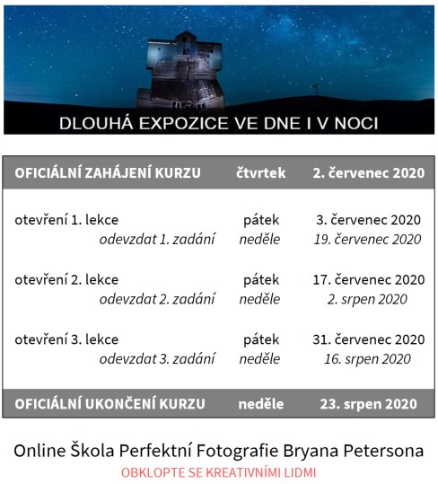 Pronikněte do tajů fotografování s dlouhou expozicí, naučte se jak na sametově dlouhou vodu a mraky, získejte do záběru světelné čáry od aut nebo hvězd, nafotografujte pronikavou mléčnou dráhu a bezpočet hvězd na noční obloze, hrajte si s uzávěrkou při malování, při tvoření abstraktu, při zmrazení času, dodejte duchy do kompozice, zachyťte ohňostroj kreativně, vyzkoušejte psát a kreslit se světlem, přidejte pohyb do statického snímku a naopak, nafoťte pohyblivý objekt jevící se jako statický a objevte mnohé další kreativní techniky fotografování s dlouhou expozicí!
